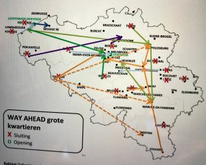 Selon les informations du journaliste de la VRT Jens Franssen, 14 casernes vont être fermées pour moitié en Flandre pour une autre moitié en Wallonie. Les casernes concernées seraient la base aérienne de Coxyde – dont les hélicoptères sont appelés à déménager vers l’aéroport d’Ostende -, le quartier Lemahieu à Ypres, la caserne de Gavere (Flandre orientale), qui abrite le centre de contrôle du trafic aérien (ATCC) militaire, la caserne de Tielen (province d’Anvers), qui abrite le 3ème bataillon de parachutistes, et des installations à Ostende, Zutendaal (Limbourg) et Berlaar (province d’Anvers) ainsi que Glons, Nivelles, Liège, Bastogne et Tournai pour la Wallonie.