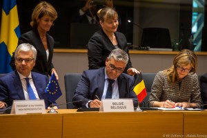 Le ministre de la Défense Steven Vandeput et le ministre des Affaires Étrangères ont signé lundi la notification sur la PESCO (PErmanent Structured Cooperation) tout comme 22 autres membres de l’UE. La PESCO est un cadre juridique européen pour l’investissement dans la sécurité et la défense européennes et un cadre politique pour améliorer une meilleure coordination en terme de coopération entre les pays européens.