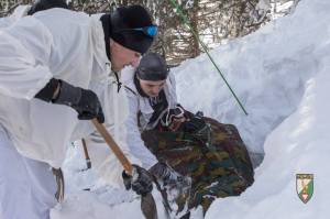 Durant 15 jours, les Lignards ont pu s’entraîner à différentes techniques: progression technique en milieu montagneux, vie en campagne, tir avec différents armements, réaction aux contacts lors de progression tactique au niveau Section de 10 personnes ou niveau Peloton de 30 personnes et Compagnie à l’aide de skis de randonnée ou bien encore recherche de victimes en cas d’avalanche, sauvetage et évacuation. La météo n’a pas épargné les Lignards avec du brouillard en début d’exercice qui a obligé la compagnie à annuler l’exercice de tir initialement prévu le vendredi et leur a empêché le lendemain d’atteindre le sommet « Scharfes Eck » situé à 2.367 mètres d’altitude alors qu’elle avait atteint 2.100 mètres. Durant la deuxième semaine, la température est devenue de plus en plus glaciale, atteignant – 32°C le lundi mais cela n’a pas entamé la détermination des Lignards qui ont terminé avec succès cette période d’entraînement hivernal.