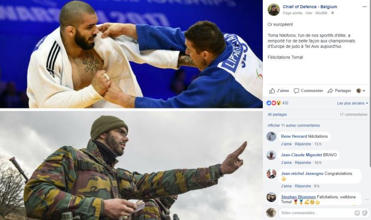 En tant que sportif d’élite de la Défense depuis 2013, Toma Nikiforov a suivi la formation initiale militaire et est affecté à la division des sports de l’École Royale Militaire à Bruxelles. Son titre européen a été salué par les différents réseaux sociaux de la Défense dont celui du chef de la Défense, le général Marc Compernol.