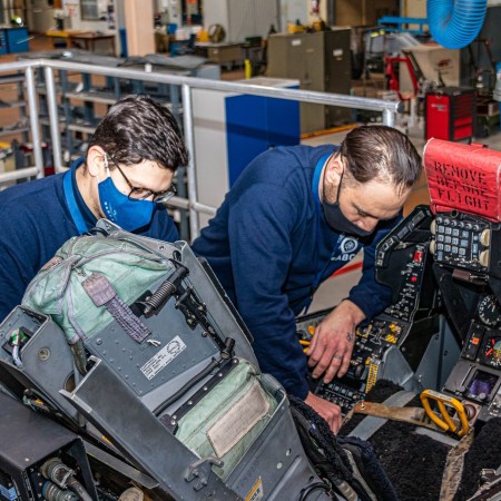 Des techniciens civils de SABCA et PBEC s’occupent de l’entretien des F-16