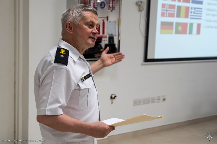 5.Le commandement de l’opération Agenor: de mars à juillet, l’amiral de flottille belge Tanguy Botman a été à la tête de la Task Force 474 de l’opération Agenor, le volet militaire de la mission européenne EMASOH (European Maritime Awareness in the Strait of Hormuz) dans le détroit d’Ormuz. Il a été le deuxième commandant non-français de cette opération après le Danemark. Cette mission s’est faite en coopération avec la Marine néerlandaise, qui a fourni le chef d’état-major ainsi que trois officiers d’état-major.