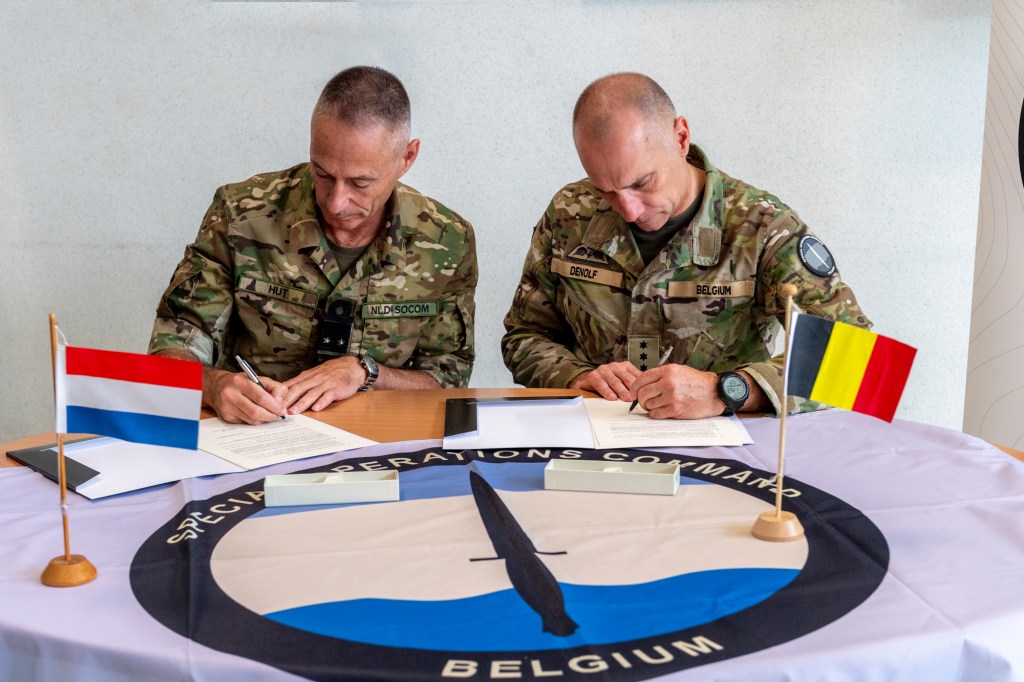 La même semaine, le commandant du SOCOM belge, le commandant Wim Denolf, et le commandant du SOCOM néerlandais, le général de division Jan Hunt, ont signé une déclaration d’intention visant à créer un groupe de travail conjoint ‘forces spéciales maritimes’ (C-SOMTG). En 2021, la ministre Ludivine Dedonder avait indiqué que la Belgique et les Pays-Bas avaient pour ambition de proposer un Composite Special Operations Maritime Task Group pour 2026 pour les opérations spéciales de l’OTAN.